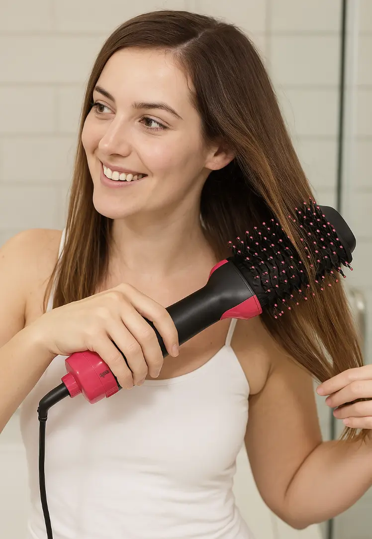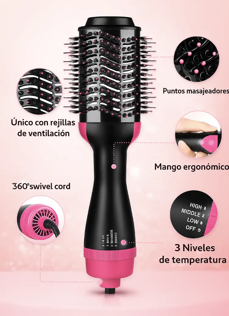 Con nuestro Cepillo Secador y Alisador 3 en 1 podrás secar, alisar y dar volumen en un solo paso. ¡Peina tu cabello de manera fácil, rápida y profesional sin salir de casa!